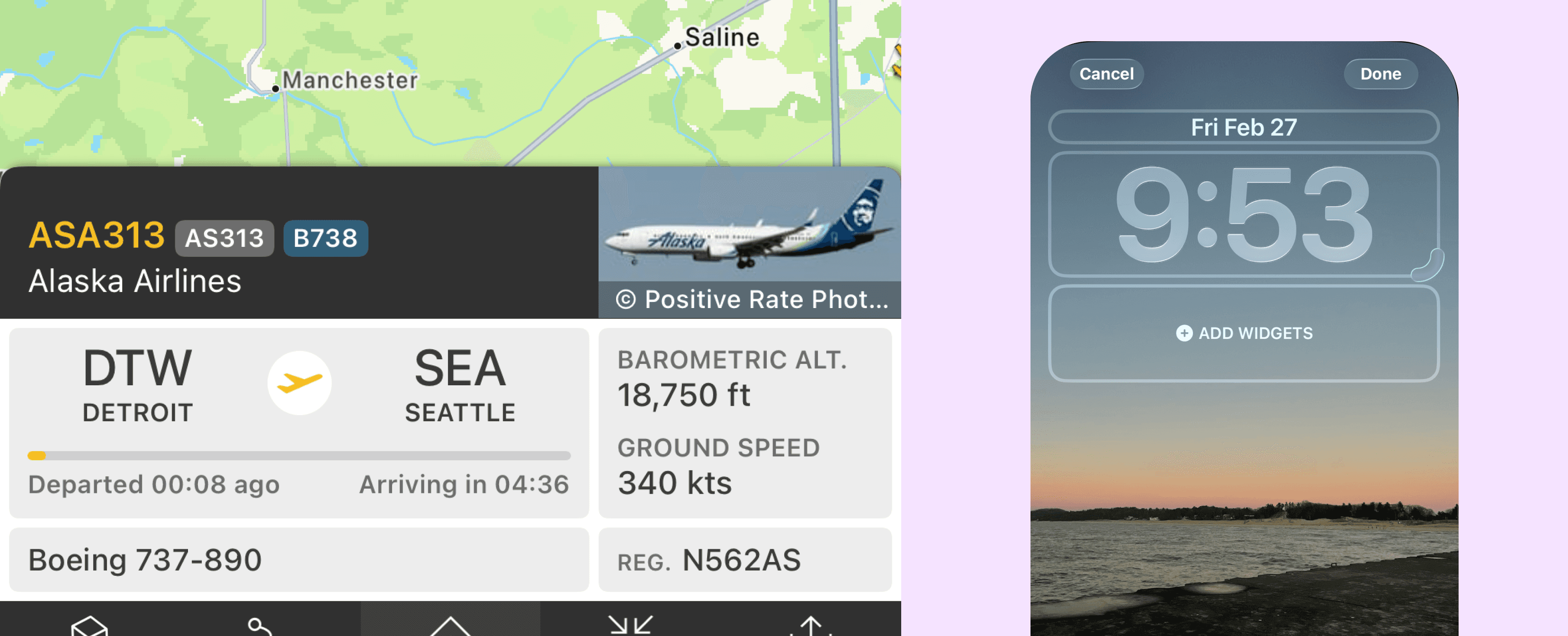 Being a fan of tracking planes, I have experience with many different platforms such as Flightaware, Flightradar24, Flighty and more. What started as a way to track my flights, turned into a fun game of guessing the planes flying overhead. Although these platforms are great, one issue I ran into was getting them open in time before the planes flew past. This is where the idea for a widget came about.