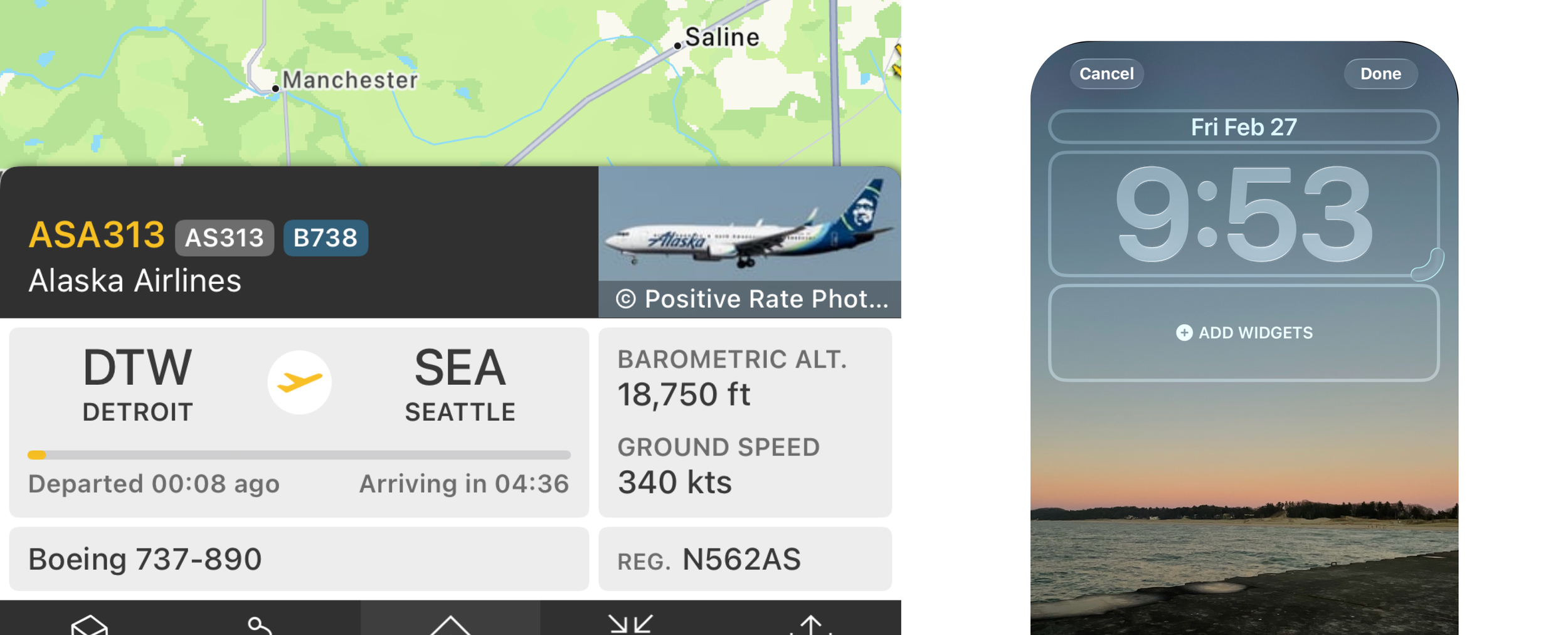 The widget uses real-time location data to detect nearby aircraft and automatically selects the closest plane overhead. It then displays key flight details—such as airline, altitude, and route—in a simple, glanceable format on the lock screen.