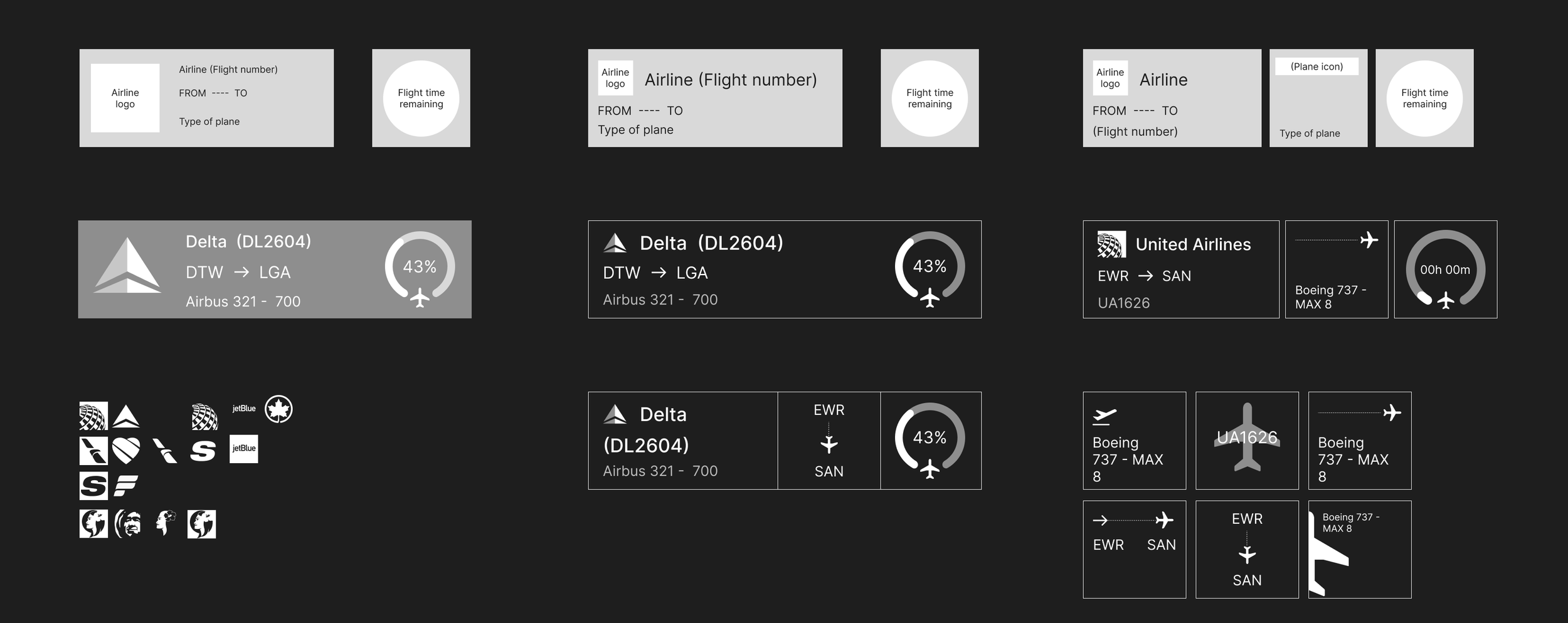 One problem I came across with my first 2 designs was that the airline name plus flight number were often way too long for the space given for the larger widget. So, in my third design I decided to take advantage of the second smaller widget and move the type of plane to that section. I decided to move the plane type because that is secondary information that not everyone may be interested in. By making this its own widget, users will not have the choice to display it or not.